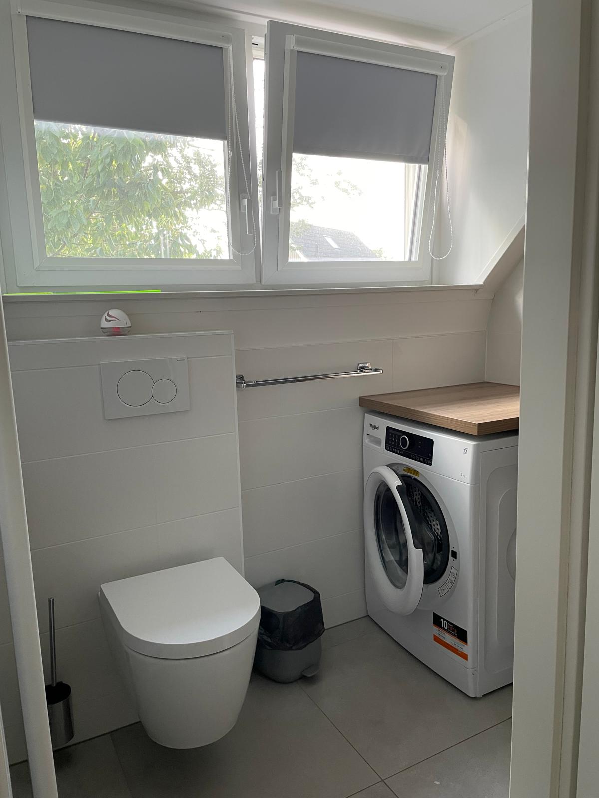 De badkamer is ook voorzien van een wasmachine.