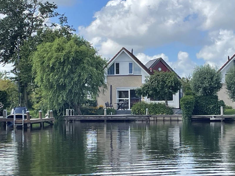 Achter het huis is een tuin met een terras aan het water en een aanlegsteiger van 8 meter met een ruimte voor een boot.